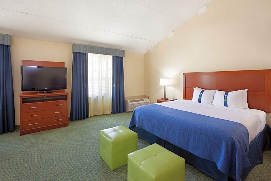 This accessible room features a roll-in shower, flat-screen TV, and seating area.